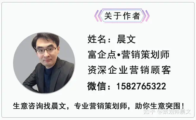 我是富企点策划师晨文,专注于行业活动策划、产品销售、项目运营,如果你的生意在经营中遇到了问题,都可以和我交流,我来为你解答!