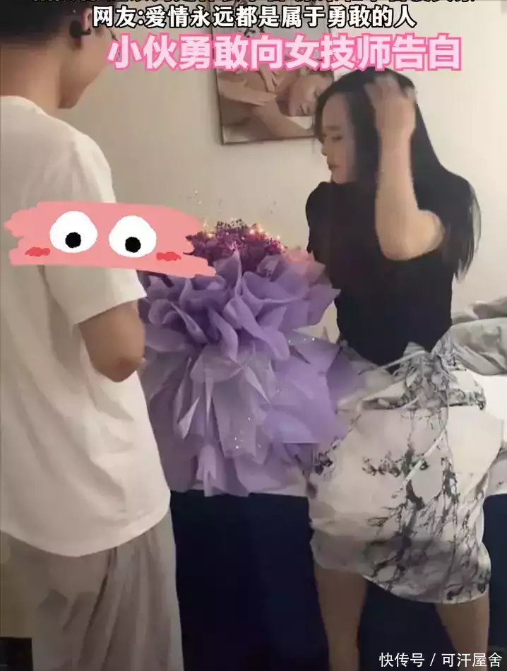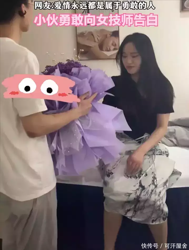 他们会被女技师的温柔和专业所吸引,视频镜头前这位小伙就是如此,只见他鼓起勇气手捧鲜花向着面前这位漂亮的女技师告白,或许被小伙真挚的感情所感动,女技师最终也接过了小伙的爱意,同意继续发展关系。