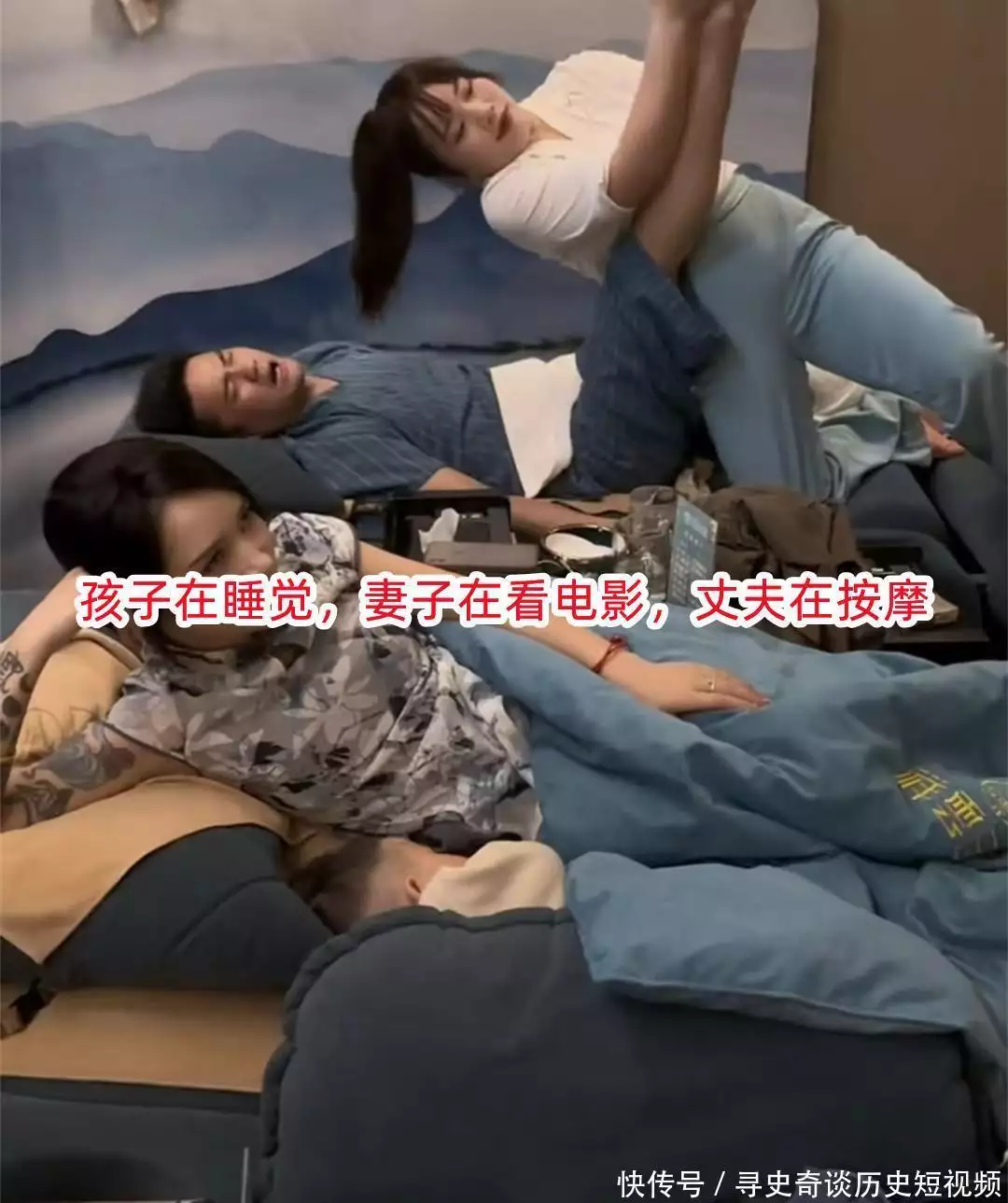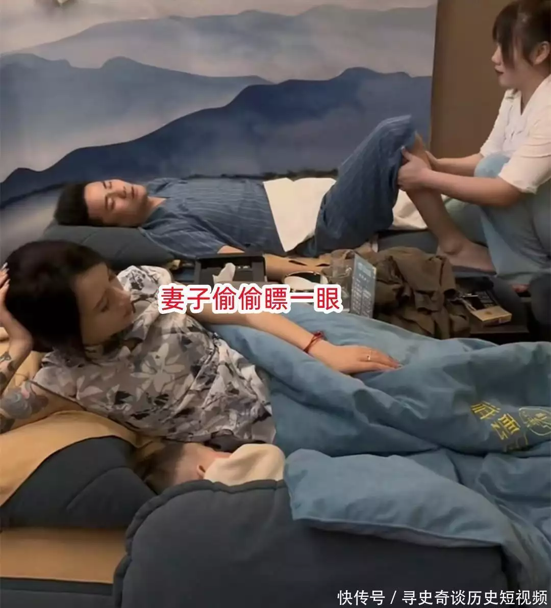 所以,远远看上去,包间里便出现了这样一幅诡异的画面:一位女技师给丈夫按着脚,而丈夫时不时地瞄一眼妻子,生怕妻子发火,而妻子表面上虽然哄着孩子睡觉,可是暗地里却偷偷观察着技师和老公的情况。一种诡异的气氛,漂浮在这个包间上空,每个人都心怀鬼胎,让人哭笑不得。