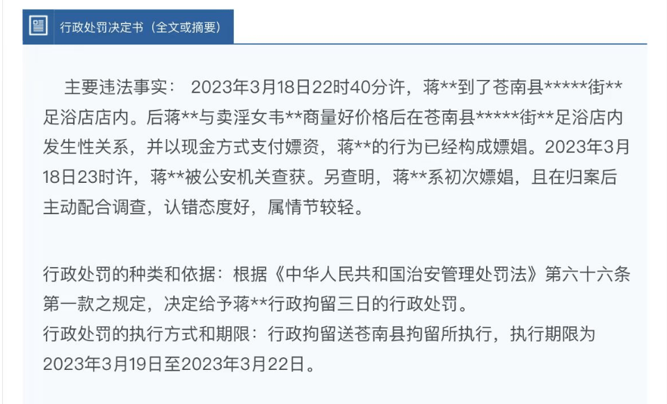 根据这些行政处罚决定书可以了解到,在3月18日晚10点多,金乡派出所突袭了这家足浴店,结果当场查获多名嫖客和卖淫女。