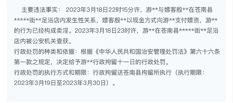 近日,在浙江政务服务网上,浙江温州苍南的一家足浴店因卖淫嫖娼被警方给一锅端了。共有6名男女被拘留。