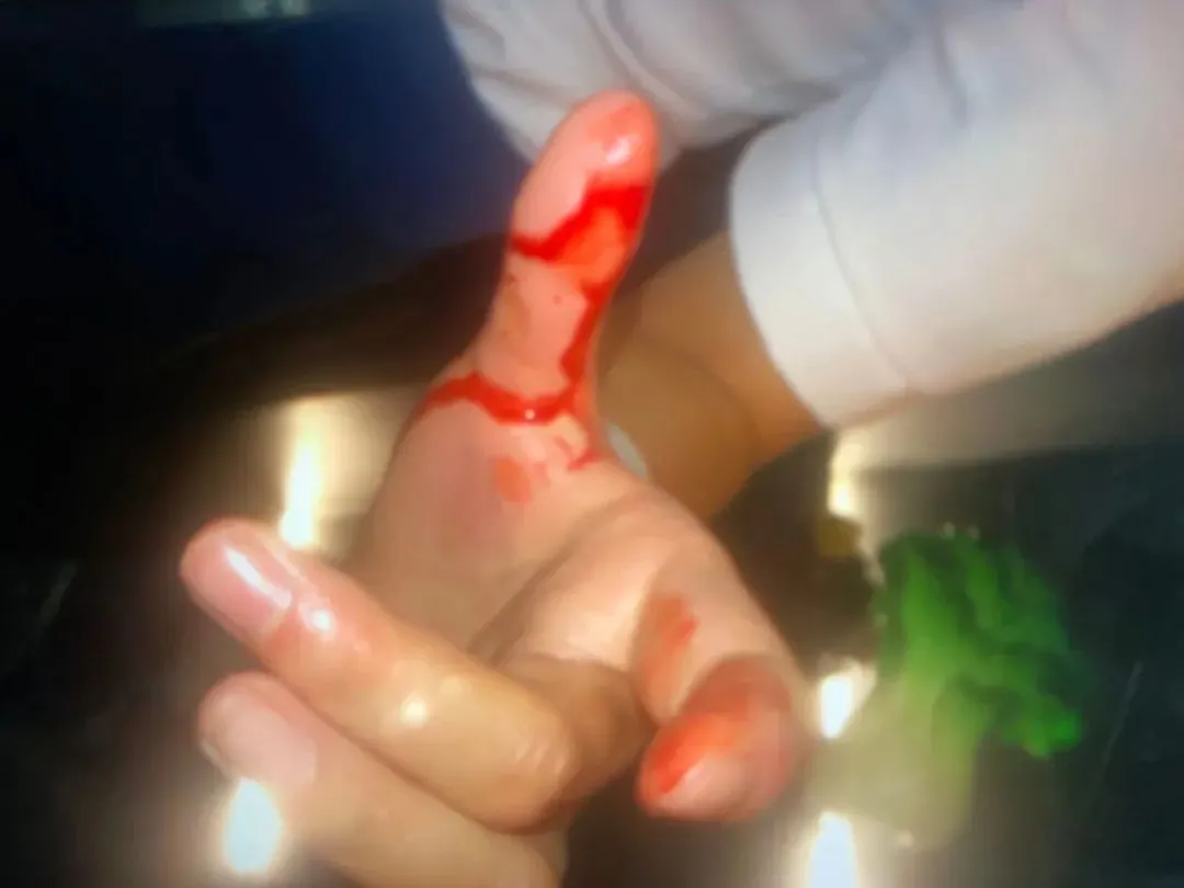足浴店里挤满了足浴技师,门口堵着几个膀大腰圆的社会哥,民警刚走进去,边上的一名双手滴血,脖子也鲜血淋漓,看起来有几分吓人的年轻女子刘某就指着一个站在包厢门口的小伙子大喊:就是他,警察同志,就是他!快抓住他!