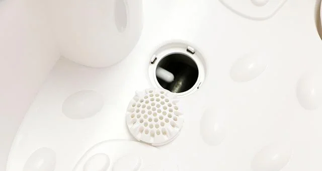 足浴器Q2带有可拆卸的过滤网设计,其采用旋转安装设计,其主要用于过滤洗脚盆里面的药物杂质,清洗的时候还是比较方便。