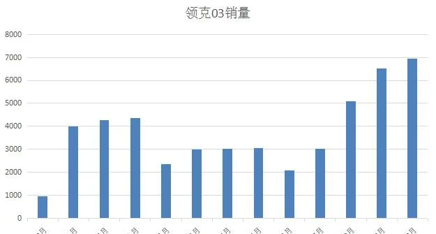 直至11月份领克销量出炉,我想用成功二字来形容03的销量也再合适不过了。领克品牌整体销量为14131台,01、02的销量分别为4529台和2357台,而03也是首次突破了月销七千台的大关,给出了7245台的数据。