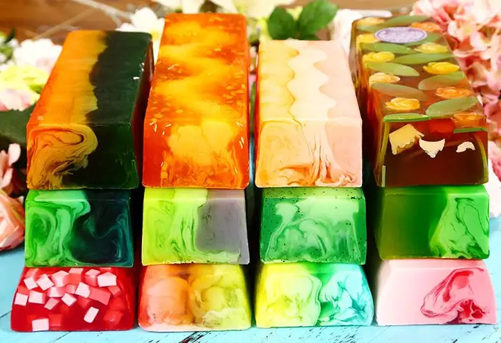 精油是绝对没有鲜艳的粉红色、草绿色这种颜色的。大家要小心提防色彩鲜艳的精油,只有极少数的精油是颜色鲜艳的,例如德国洋柑橘,因为含有相当珍贵的成分蓝烃,它的颜色是深蓝色的。所以有一些色彩鲜艳五颜六色的香皂,号称是‘精油皂’其实只是色素+香精的效果哦~