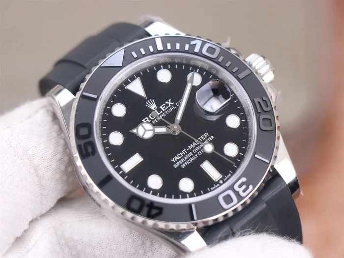 腕表尺寸42mm,这个尺寸对大部分兄弟都比较友好。从正面来看,双向旋转的外圈(水鬼是单向的),再加上新款的黑色Cerachrom陶质字圈,充分展示了游艇名仕的精髓,同时也完美解决了市面上版本松松垮垮的问题。,转动的力度和手感同原版般轻快,哑光磨砂外圈使磨光数字和刻度格外鲜明。