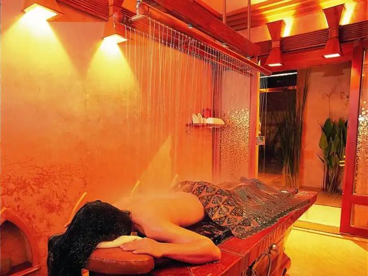 这家水疗馆最吸引人的一定是选址。它隐匿在一个有点陡的小山上。进去之后会有内部的车带顾客穿越山路走进水疗馆。房内很宽敞,室内有桑拿室和冲凉室,室外有露天的海边花瓣泡澡~吹着微风泡着花瓣浴绝对是完美的享受~在拍岸惊涛与轻音乐声中享受着轻柔的按摩,岂不美哉?