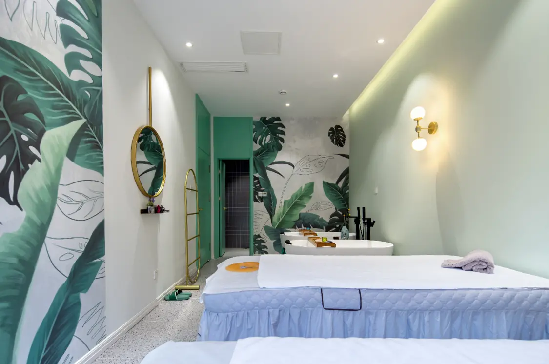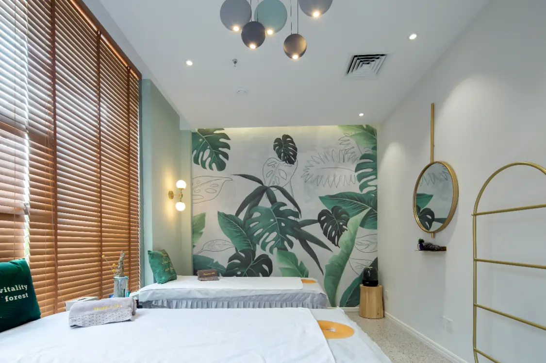 SPA馆 —— TIMELESS SPA 中国,青岛 现下的城市生态,常迫使我们调快步调,吸收更多,以跟上它的步伐。我们不断的接收信息,以期重整内化成长,却又常常因此陷入困顿,渴望能有一些放空喘息的空间。艺科为TIMELESS SPA的设计即想在城市CBD商区一隅打造这样一个绿色隐秘空间,将一切纷扰隔绝在外。在门内的世界,溜进时间的缝隙,去找寻、去聆听、去回归自己,在星空下肆意 ... 内外 绿色主调一路引导,配以简约流畅的线条,营造明澈、通透、优雅的整体空间气质。设计师采用室内外发光膜结合使用,在更好的为室内绿植打光的同时,使室内外形成延伸感。门廊彩色玻璃错落层叠,搭配光的出现,轻盈、朦胧而富有层次。 房间 房间内隐藏着质感的碰撞与细节的惊喜。单人房内玻璃、金属、木材,不同材质混搭,形成视觉上的轻微跳跃,又融入整体。墙面凹凸造型与绿植壁纸,令墙面更有细节,避免视觉上的沉闷。星空房采用全面星空灯光处理,配以点点烛光,轻易便可沉浸。 休闲区 休闲区大面积绿植壁纸与空中错落木质置物架搭配,营造出自然丛林感。窗口处绿植巧妙遮挡窗外杂物,净化视觉的同时与室外景观自然互动。设计师灵活运用玻璃进行功能分区,保证空间内视觉流畅的同时,还给室内提供了充足的自然光线。 艺科倾力于酒店、餐饮、民宿及商业项目的空间设计 是集室内设计、整体规划、平面及产品设计服务于一体的多元化设计研究室 艺科设计将创意理想与价值回馈相结合 致力于创造空间设计的商业价值以及美好体验 设计公司: Yco Design 项目名称:TIMELESS SPA 主创设计:赵秋平、栗凌欣 项目地点:山东省青岛市CBD万达区 项目面积:200平方米 项目摄影:距离大叔-孙冠军 项目撰写:亢海伦
