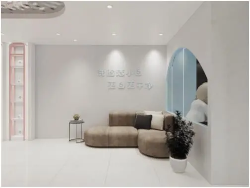 而对于现下的年轻消费者而言,简单舒适的店面环境是促使他们选择轻美容服务的重要因素之一。因此洁小白提出了简单而不简约的概念,这不仅是他们对自身服务的定义,也是他们想在装潢设计上想要体现的理念:现代轻奢简约的设计风格贯穿整个店面,给快节奏商圈中的年轻人一个短暂的停泊地,用美容洗脸的方式为他们带来片刻的放松。