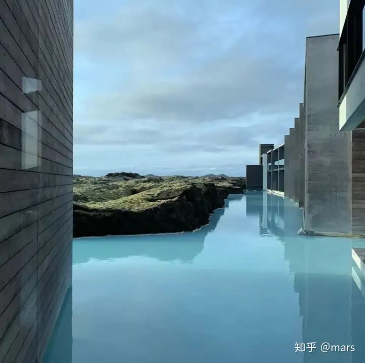 整个蓝湖区域里的酒店不多,而蓝湖温泉酒店是一定要去住一晚的,它是全冰岛第一家也是目前唯一一家五星级酒店。酒店设计风格秉承一贯的灰色调北欧风,有 5 种房型,共 62 间环绕蓝湖的套房,所有房间都有超大的落地窗,打开窗帘就能看见火山岩和蓝湖美景。