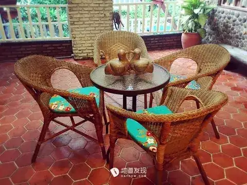 大大的泰北风格木屋,这么多年一直都是老样子。很难想象在周围的天铁超市新建筑中间有这么一个小花园。