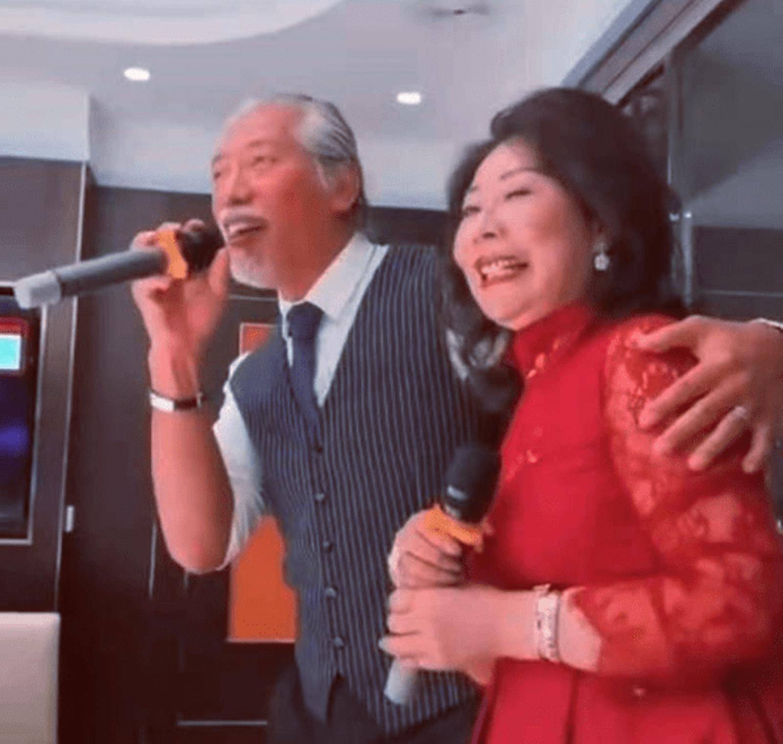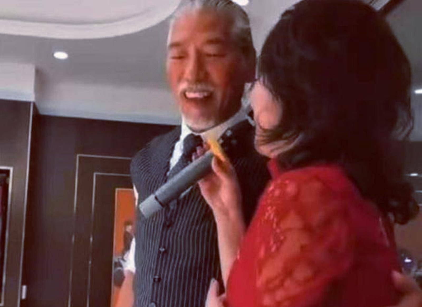 张耀扬虽然比以前苍老了很多,不过看起来红光满面,和美女又是喝酒又是合唱,好不快活。
