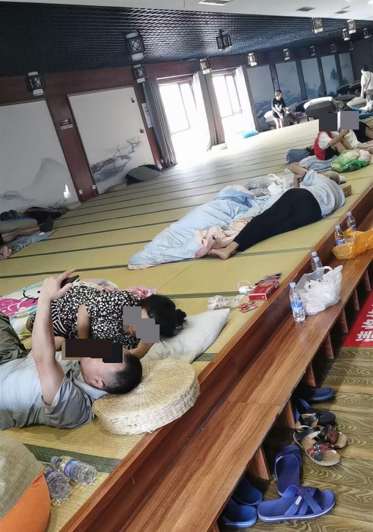 “我把白天的课程全都停了,腾出教室给他们,面积一共有500多平方米。”该老板称,目前来教室暂住的群众有130多人,包括40多个小孩,能睡人能躺人的位置都已经安排上了。“开着空调,很多人也自带了薄被褥。”该老板说,8月2日,他早起为大家准备了包子。他的朋友以及培训班学生的家长得到消息后,也送来食物和水,还带来三明治给安顿在这里的小朋友们。还有志愿者也送来炖菜和包子。