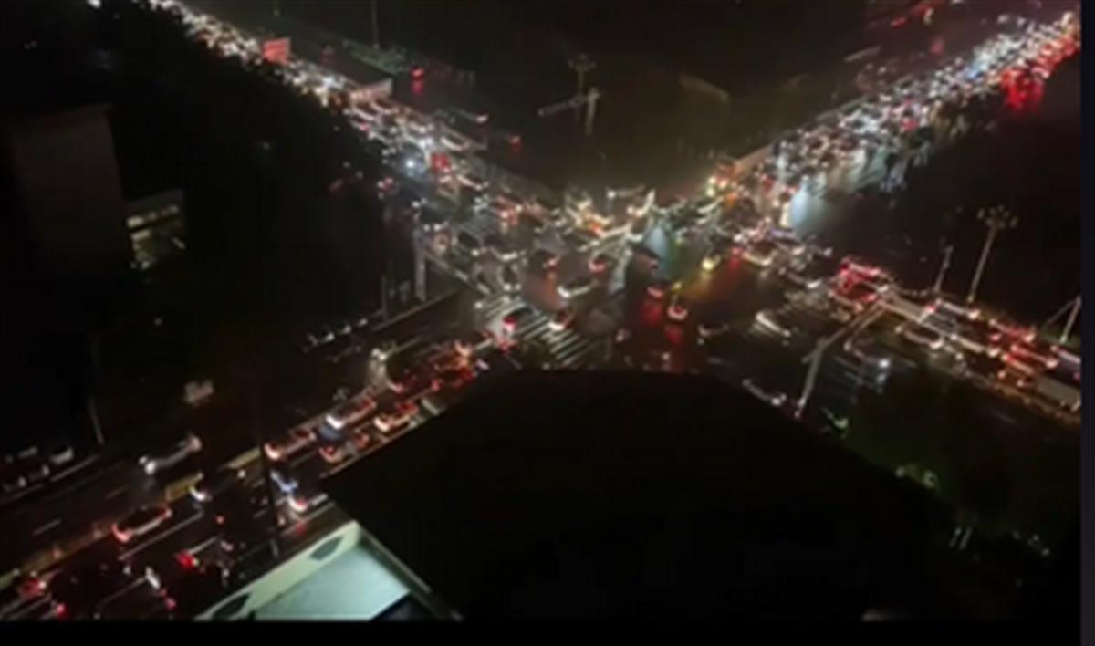 通知发出后,居民们纷纷驾车驶离小区,前往高速收费站。城区的道路上,车辆排成长龙。