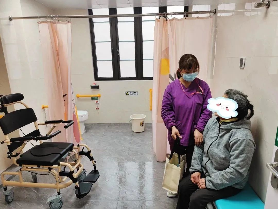 了解完老人情况后,工作人员帮薛阿婆进行了助浴登记。开始前,助浴员会帮老人进行体温和血压的测量,当生命体征显示正常时,再为老人进行洗浴服务。