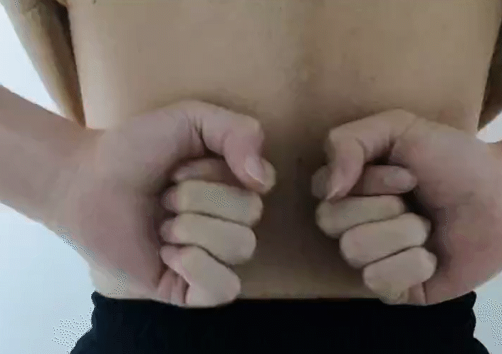还可以双手握拳,放在腰眼穴位置上旋转按摩,也能感到非常放松。