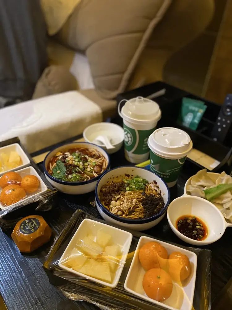 即使工作日午间,按摩房间与技师依然供不应求,在房间里嗦了一碗辣鸡面,一碗醪糟汤圆,一份水饺,一杯咖啡,看了小半场电影,悠悠闲闲等来了技师。