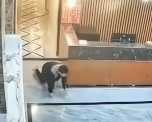 近日,安徽滁州来安县一男子在洗浴中心潇洒后逃单。为了避开前台视线,该男子手脚并用从大堂爬过,甚至连鞋都未来得及穿走。