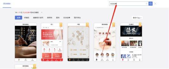 您可以在搜索框中输入关键词,如“洗浴预约”等,以便快速找到相关模板。
