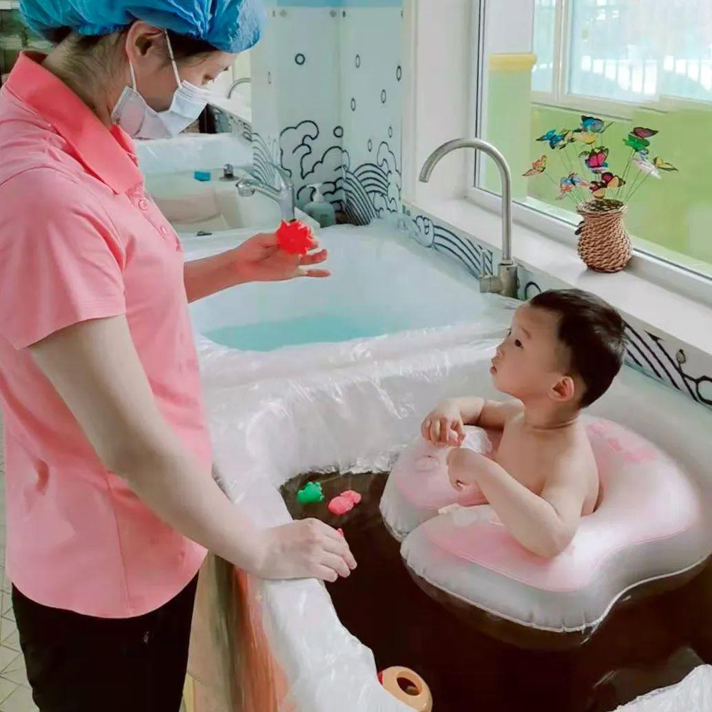 现如今的“泡泡堂”中医水育馆隶属于中医健康养生部中医儿科,环境优雅温馨,室内温度适宜,设有专门的消毒隔离程序,统一的服务流程,确保“一宝一水一膜一消毒”。“泡泡堂”具有多名经过专业培训技能过硬经验丰富的医护人员,同时还配备中医推拿按摩师,专职负责为患有湿疹、黄疸、机体抵抗力低下等药浴后的宝宝开展推拿按摩、穴位贴敷等服务,让宝宝在卫生、安全、温馨的环境下洗浴。