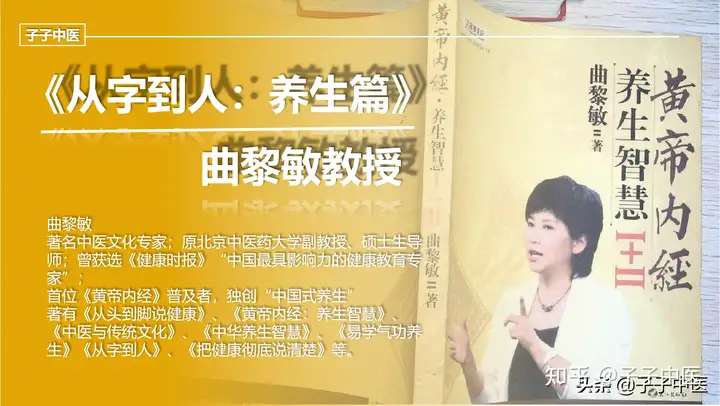 曲黎敏,著名中医文化专家;原北京中医药大学副教授、硕士生导师;曾获选《健康时报》“中国最具影响力的健康教育专家”;首位《黄帝内经》普及者,独创“中国式养生”著有《从头到脚说健康》、《黄帝内经:养生智慧》、《中医与传统文化》、《中华养生智慧》、《易学气功养生》《从字到人》、《把健康彻底说清楚》等。