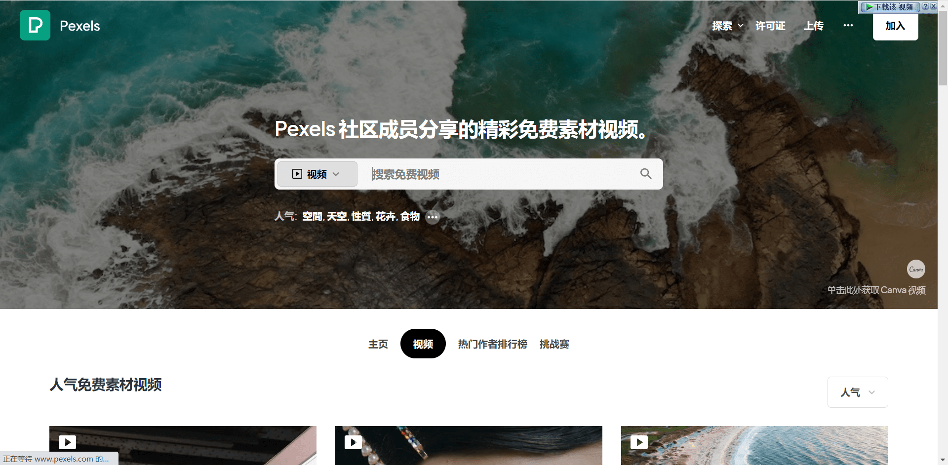 最后,我要推荐的是Videezy。它是一个免费分享社区,其中包含了许多健康养生短视频素材。Videezy中的视频素材大部分都可以自由使用,你可以轻松找到适合自己的素材。