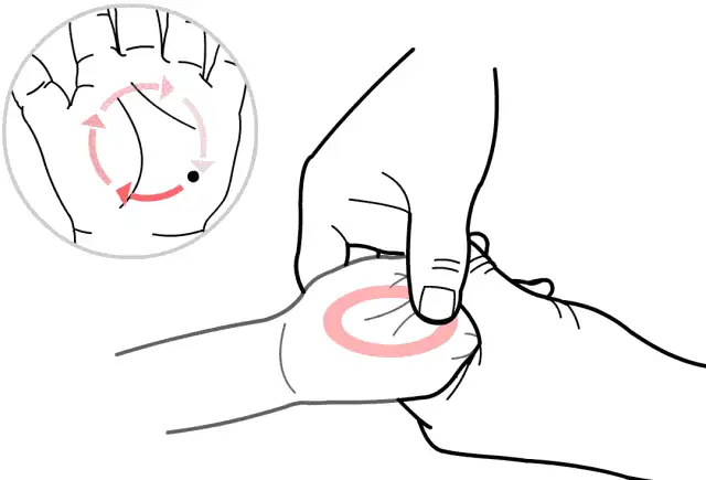 按揉百会1分钟,如果宝宝囟门没有闭合,就不要按揉,而是改为手掌搓热,呈空心掌放在上面,温热百会。囟门已经闭合的宝宝,可以轻轻按揉百会。