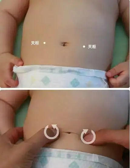 操作:用食指和中指分别点按在两侧的天枢穴,轻轻的按揉,揉50~100次。