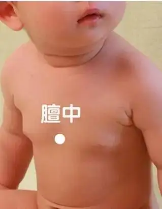 位置:在胸骨上,两乳头连线之中央,属任脉