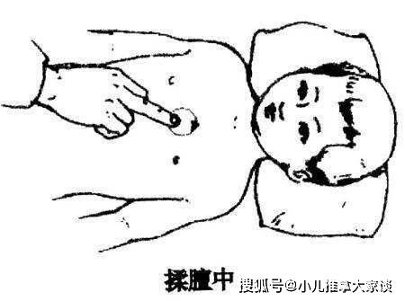 术者右手拇指按揉孩子脐上4寸, 按揉100~200次。