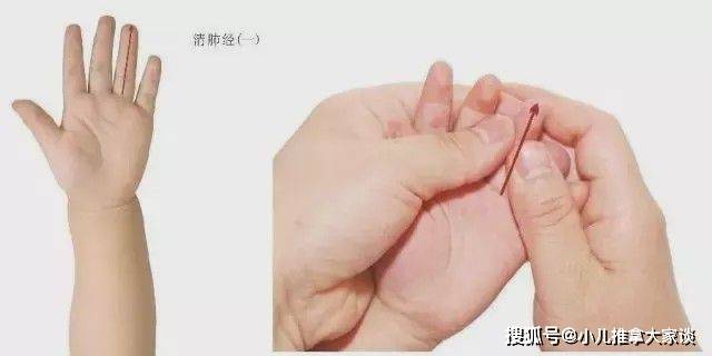 手法:无名指指面自指根推至指尖为清肺经;反之称补肺经。