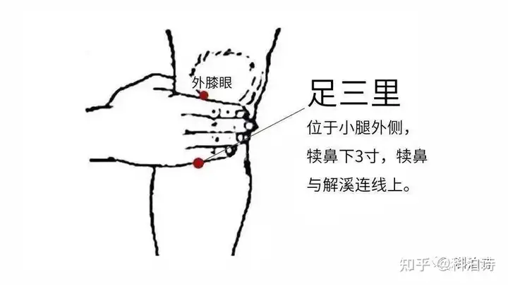位置:足三里位于膝眼外下四横指。