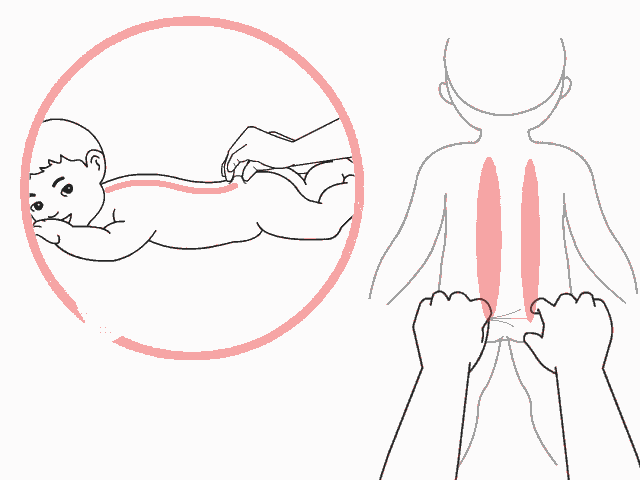 【操作】双手用捏法自下而上称捏脊,左右两手交替合作,每捏三下提一下,称捏三提一法。此时注意,过小的婴幼儿只捏不提。捏脊之前,先轻轻按摩几遍背部,放松肌肉。