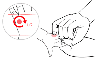 【操作】用掌面或四指指腹进行摩腹。