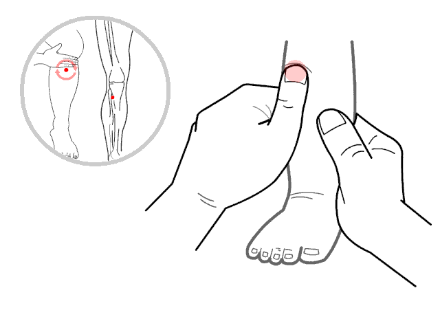 【位置】外侧膝眼下3寸,胫骨外侧约一横指处。