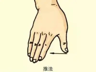 ②指推法:用指着力于施术部位,进行单方向直线推动,用于肌腱部。