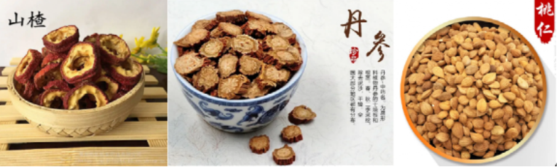 【原料】山楂10克,丹参15克,桃仁(去皮)6克,粳米50克。
