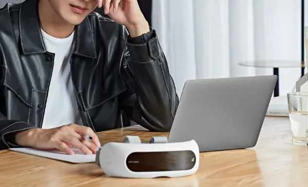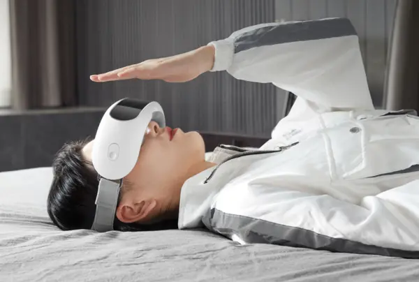 这款眼部按摩仪,拥有人体工学设计,能更贴合亚洲人的脸部;机身右侧设计有极简开关,一键就可以切换三种模式;机器后部采用立体式剪裁绑带,不会紧勒头部。另外,灵眸眼部按摩仪相对于普通气囊按摩单一的方向,通过采用机械式揉捏机芯,能够提供XYZ轴三个维度的立体按摩;在太阳穴位置增加了一个亲肤硅胶头,可以对太阳穴进行深度的揉捏按摩;颠覆传统按摩仪复杂按键设计,加入了手势操控,在眼前挥挥手就能切换按摩模式。