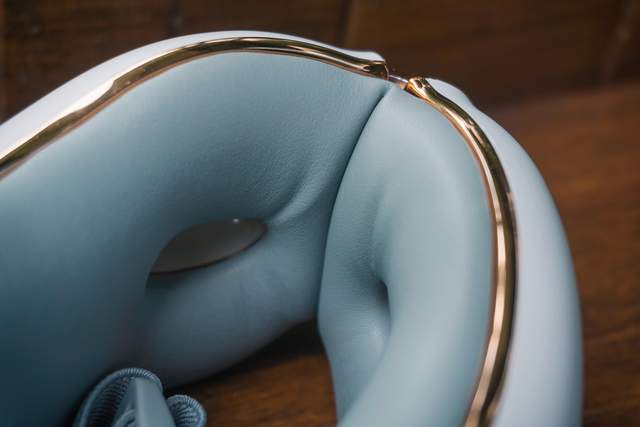 与皮肤直接接触的部位均采用高级蛋白皮,摸上去特别柔和,脸部无异物感,且不易引起过敏。用过高端头戴式耳机的朋友应该对这种材质很熟悉,它的特点就是柔软舒适、耐脏耐磨易清洁。