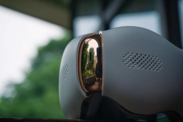 在按摩、热敷、脉冲理疗过程中,可以选择睁眼或者闭眼,仪器并不会压迫眼球,正前方还做了可视化镂空设计,外面可以透光进来,使用时不会有恐惧不安感,这处设计虽小,但解决了绝大多数眼部按摩仪不可透光、不可睁眼的痛点,大大好评。