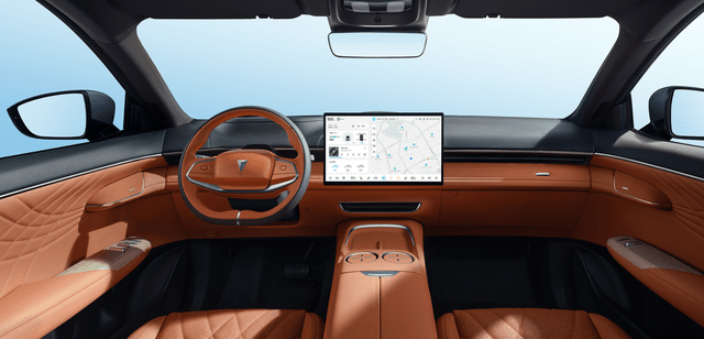 内饰部分,新车同样没有延续深蓝SL03设计,而是用上全新更简洁的设计,取消了全液晶仪表将其更换为AR-HUD投影,并将中控扶手升级为可放置两台无需充电装置和双水杯的造型。座椅方面,换上更具质感的填充物,并且将头枕设计的更加宽大与具有舒适性。
