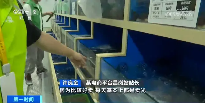 某电商平台昌岗站站长 许良金: 一种来自汕尾的九节虾比较好卖,基本上每天都卖光,周末销量会比平时多2倍。