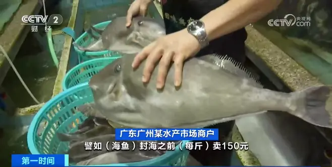 广东广州某水产市场商户: 就是便宜,譬如海鱼 ,封海之前每斤卖150元,现在卖100元或者80元左右,价格都回落了。