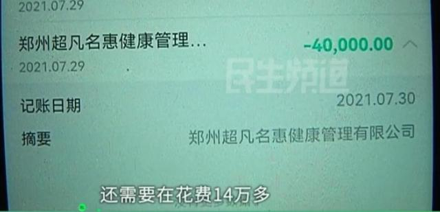 近日,河南郑州,一名女子来到郑州一间美容店做护理项目,进店办会员卡就预存5万元,在一个小时做了三个护理项目,结账时店里面的工作人员居然说这5万元不够,还需要补缴14万多。就一个小时的按摩就花费了19.8万的费用,女子当场就震惊了,而且按摩的过程中,也没工作人员告诉她价目表,直到结账时才知价格!