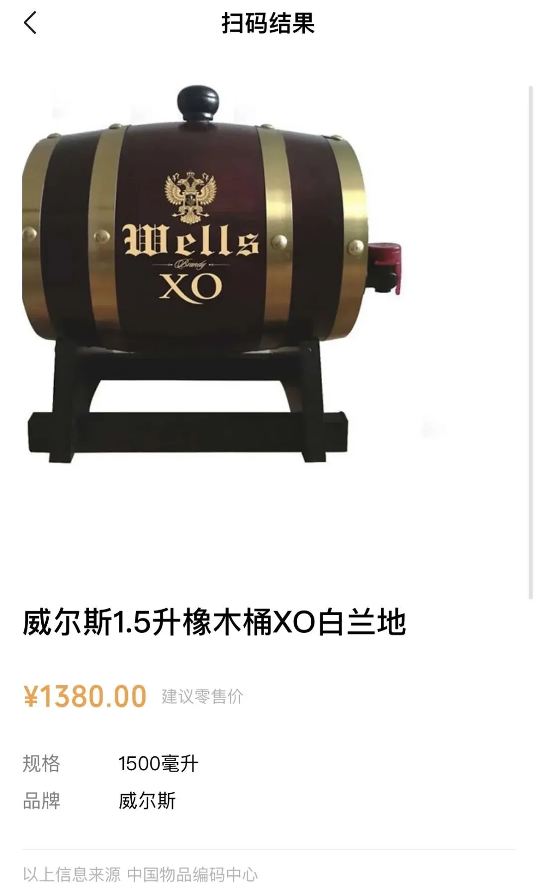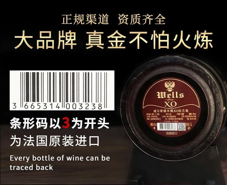 今天给大家找来的这款白兰地, 法国原装原桶进口——威尔斯XO白兰地1.5L 。