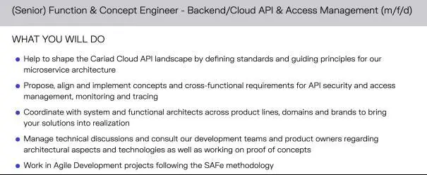 某技术类岗位要求显示,CARIAD工程师仍以管理和规划为主要职责。图源:CARIAD