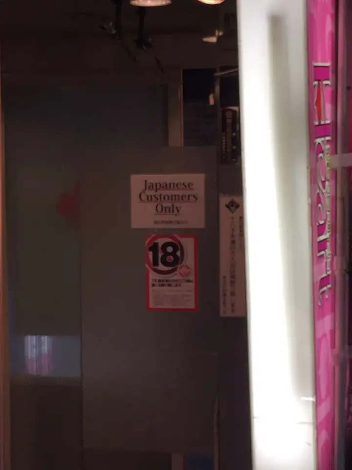 过一条街,前面就是这一个小巷子,GOO club和クラブハート,这是两家激安泡泡浴店,看过我之前写的细说日本红灯区的文章的朋友应该明白这是一种什么样的店铺。14500日元就能玩一次,说实话女孩子长得却是不怎么样。同样,门口贴着的牌子写的很明白。仅限日本人。