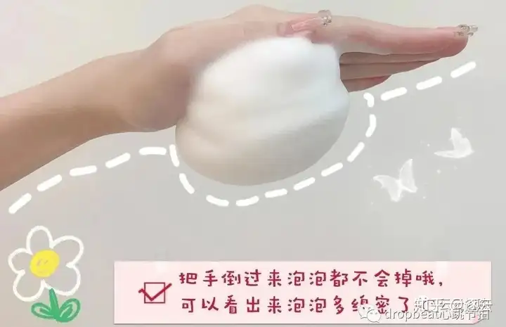 这种泡泡叫慕斯泡泡,有点像你男人刮胡子的那种泡泡,绵密厚实又富有弹力。我试过放一枚硬币在泡泡上,硬币竟然10秒钟都没有塌下去!