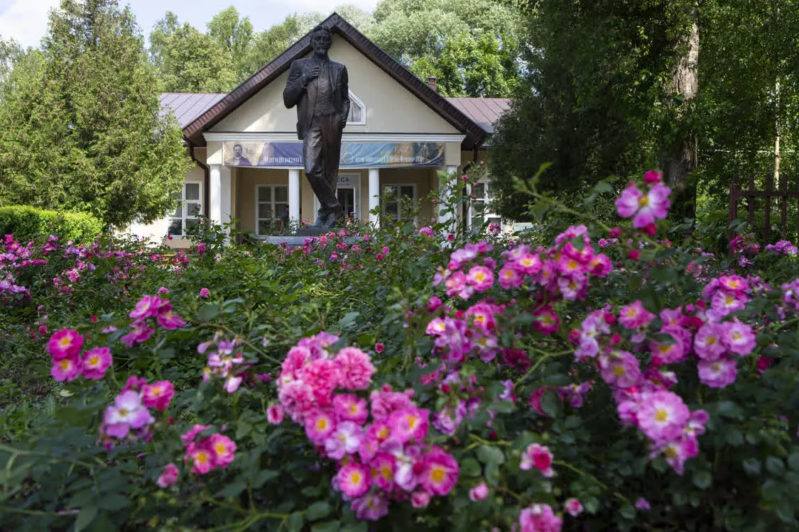 契诃夫的雕像和常年盛开的玫瑰。图片为《契诃夫的玫瑰》书中插图。