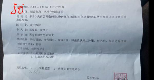 郑悠涵仔细一看,被自己的双腿吓了一跳,她赶紧到医院检查,结果显示,郑悠涵双腿出现红肿并伴随轻微灼痛,诊断为接触性皮炎,需要外涂激素、口服抗组胺药物治疗,并且需要定期到医院复查。